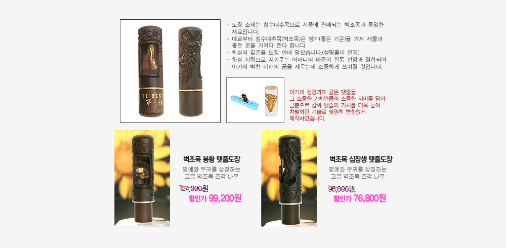 | 벽조목 십장생 | 96,000원 | 20%(19,200원) | 76,800원 |